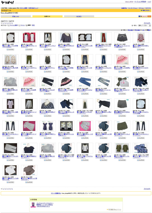 婦人服と子供服などをヤフーオークションで販売しています。展示品などのワケアリ商品を格安で掲載しています。